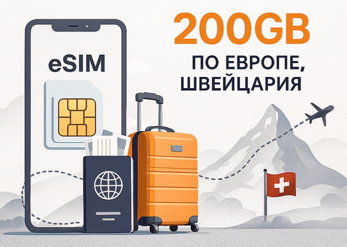 eSIM 200ГБ мобильный 5G интернет по Европе, Швейцарии